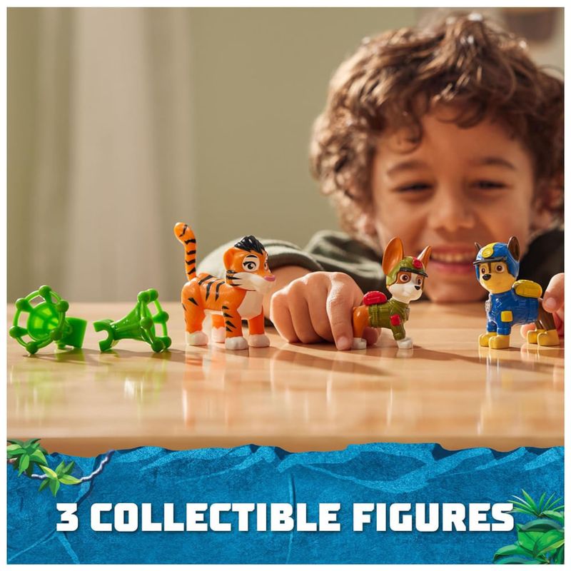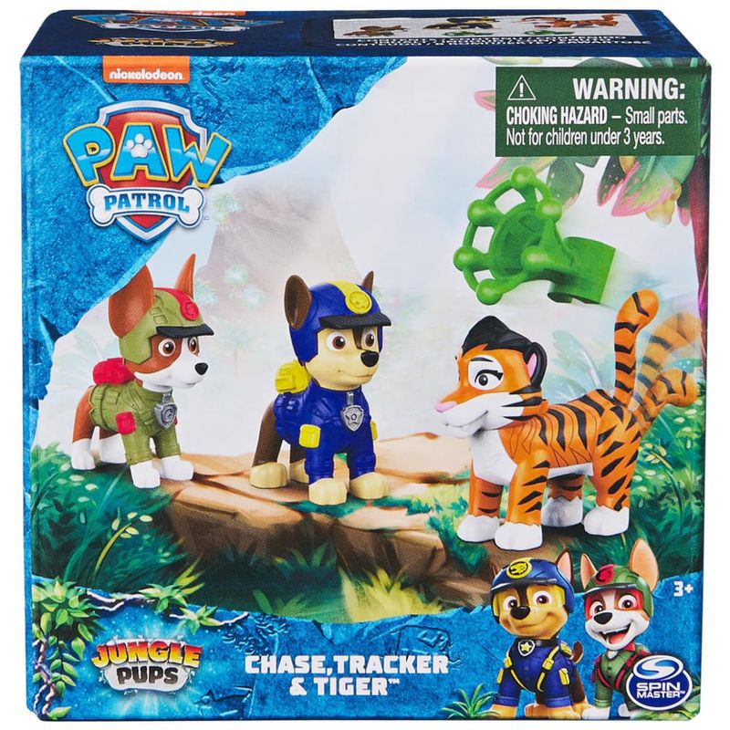 Para mais diversão, colete todos os brinquedos da Patrulha Canina Jungle Pups e The Mighty Movie, como o QG do porta aviões e os conjuntos Mighty Bonecos e Pups Aqua e Big Truck Pups vendidos separadamente . Os brinquedos pré escolares da Patrulha Canina incentivam a imaginação e desenvolvem as habilidades motoras das crianças por meio de brincadeiras de faz de conta. Este conjunto inclui 1 figura de Chase, 1 figura de Tracker, 1 figura de Tiger e 2 projéteis. Não perca esta oportunidade de proporcionar uma experiência educativa e divertida aos pequenos