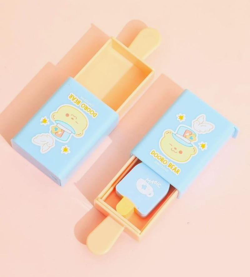 Borracha Picolé Mágico – Fofura que Aparece e Desaparece! Deixe sua papelaria ainda mais divertida com a Borracha Picolé Mágico, um item encantador que desliza para dentro e para fora do compartimento como um verdadeiro truque de mágica!Com um design super fofo e colorido, essa borracha se esconde e reaparece no suporte em formato de picolé, tornando os momentos de estudo ou trabalho muito mais alegres e criativos. Por que você vai amar?? Efeito mágico! – A borracha desliza e desaparece no suporte.