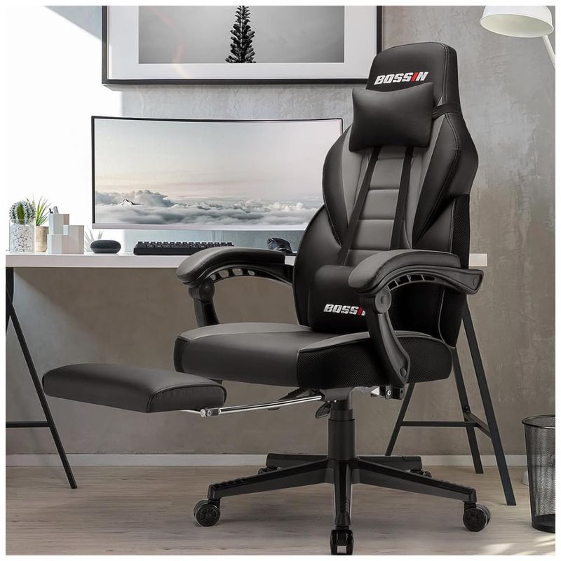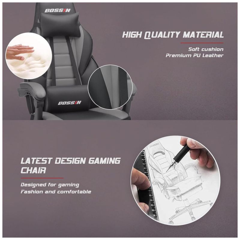 BOSSIN Cadeira de Escritório Gamer Reclinável e Ergonômica com Apoio para Lombar, Cinza Claro