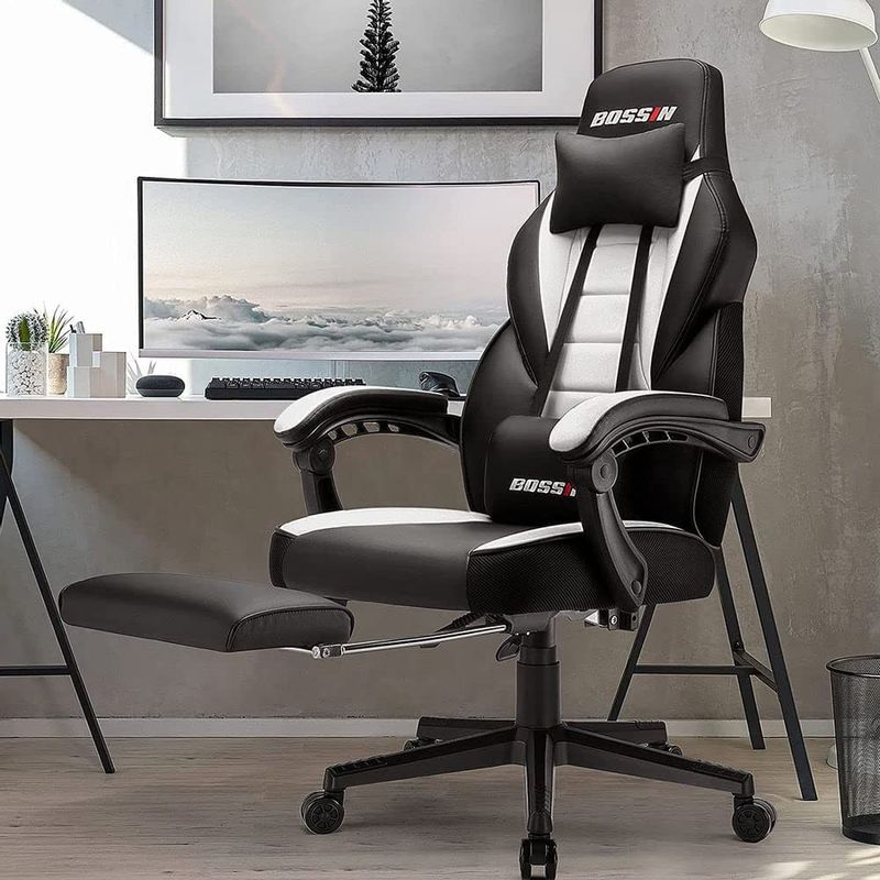 Design ergonômico para várias ocasiões Almofada maior, encosto alto e design de apoio para os pés extensível fornecem uma experiência confortável, perfeita para presente de natal, escritório, casa, ocasião de conferência e jogos intensos.