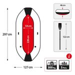 - Dimensões: (Bote 298 x 127 x 46 cm) (Capota 1.6 x 1.42 m);