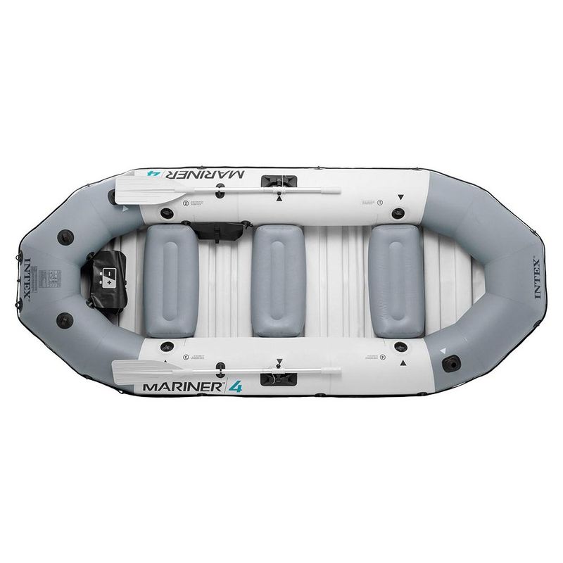 O Bote Inflável Mariner 4 Intex é um bote profissional que aceita motorização de até 3hp, instalado com suporte (vendido separadamente). Possui quilha central, suporte para remos giratórios (já incluídos) e acentos removíveis.