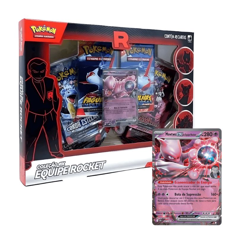 Box Pokémon Coleção EX Equipe Rocket Mewtwo EX 49 Cartas