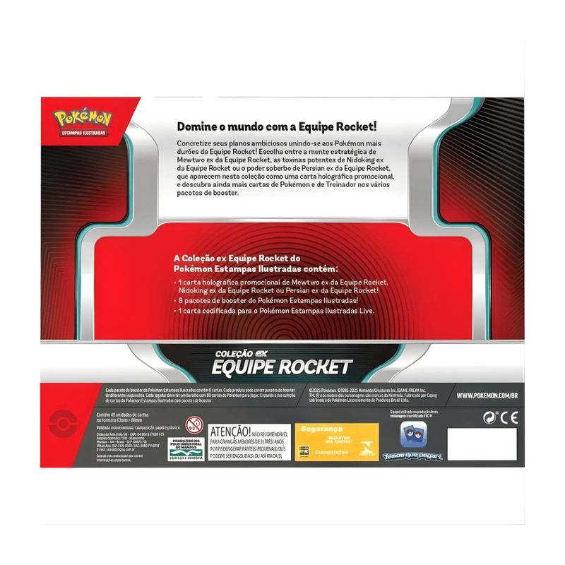 A Box Pokémon Coleção EX Equipe Rocket Mewtwo EX permite que colecionadores e jogadores explorem o poder lendário do Mewtwo sob a temática icônica da Equipe Rocket. Este conjunto especial destaca-se pela carta promocional exclusiva do Mewtwo EX, oferecendo alto valor estético para coleções e novas possibilidades táticas para batalhas. Composta por materiais de alta qualidade e pacotes de booster para expansão, a coleção é ideal para jogadores que buscam cartas raras e itens autênticos.