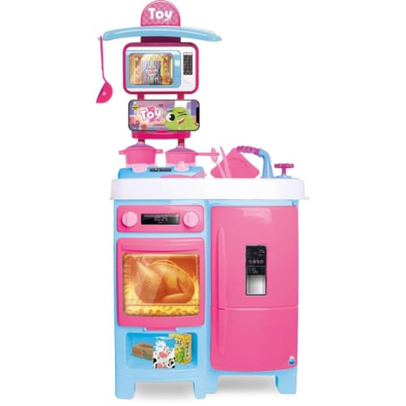Transforme a brincadeira em aprendizado com a Cozinha Divertida Toy Chef! Com design realista, cores vibrantes e funcoes interativas, ela e perfeita para pequenos chefs soltarem a imaginacao. Acompanha fogao com botoes que fazem "creck creck", torneira que sai agua de verdade e portinhas funcionais no forno, geladeira e micro-ondas — todas adesivadas para deixar a experiencia ainda mais divertida. O kit inclui 3 panelas, 2 pratos, 3 utensilios, 6 talheres e ate um suporte para celular, ideal para assistir receitas enquanto brinca.