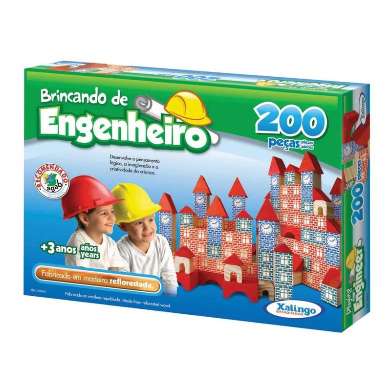 Brincando de Engenheiro 200 Peças - XalingoO Brincando de Engenheiro 200 Peças da Xalingo é um jogo educativo que proporciona diversão e aprendizado para crianças. Composto por peças confeccionadas em madeira reflorestada e tinta atóxica, o kit possibilita a criação de diversas montagens, desde pequenas cidades até estruturas personalizadas de diferentes tamanhos.