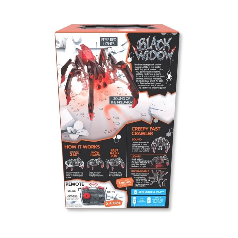 A Viúva Negra é a nova criatura robótica de oito patas da Hexbug. Ela pode andar de forma assustadora ou fugir rapidamente. Possui direção de 360 ????graus, olho de LED e um controle remoto de 2,4 GHz. O controle remoto permite ao usuário operar a aranha da forma que quiser. Como o maior membro da atual família de criaturas robóticas HEXBUG, a complexidade de seus mecanismos internos e o movimento de suas oito pernas são simplesmente fascinantes de operar e observar.