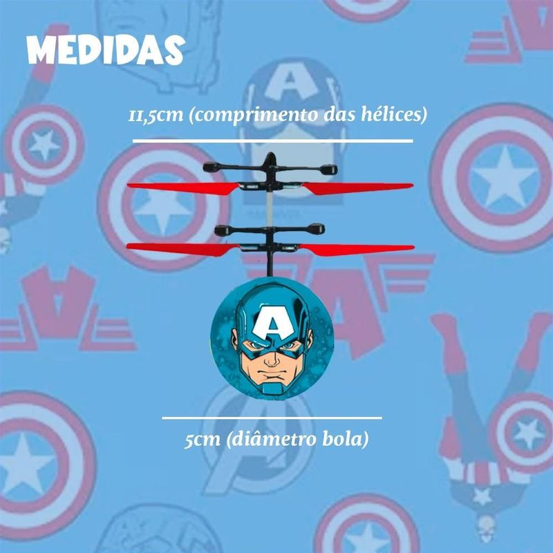 Chegou a hora de transformar qualquer lugar em uma zona de ação com o Brinquedo Bola Voadora do Capitão América e o boneco que desliza sozinho! Ambos inspirados no Capitão América, esses brinquedos trazem diversão sem fim, enquanto desenvolvem habilidades importantes nas crianças. Bola Voadora Capitão América com Sensor de Mão: Controle nas Suas Mãos: A bola voadora tem sensores de mão que permitem às crianças controlarem o voo simplesmente movendo as mãos. É como se elas estivessem realmente no comando do Capitão América! Luzes Divertidas: Com luzes LED brilhantes, a bola torna as brincadeiras ainda mais emocionantes, especialmente em ambientes mais escuros. Tecnologia e Aventura: Usando componentes eletrônicos de alta qualidade e materiais seguros, a bola voadora garante uma experiência interativa e segura para crianças a partir de 6 anos. Recarga Fácil: Vem com um cabo USB, facilitando a recarga rápida para mais tempo de voo e diversão. Boneco Desliza Sozinho Capitão América: Ação na Ponta dos Dedos: O boneco de 8 cm desliza sozinho, reproduzindo as cenas épicas do Capitão América em movimento! Desenvolvimento de Coordenação Motora: Movimentar e seguir o boneco ajuda a estimular a coordenação e a interação entre mãos e olhos. Super Compacto: Tamanho perfeito para levar a ação para qualquer lugar, pronto para a próxima missão. Benefícios Educacionais: Coordenação e Reflexos: A bola voadora, ao ser controlada pelo movimento das mãos, desenvolve a coordenação motora fina e os reflexos das crianças, estimulando também a atenção e o foco. Criatividade e Imaginação: Com esses brinquedos, as crianças podem recriar suas próprias aventuras do Capitão América, estimulando a criatividade e o pensamento criativo. Interação e Sociabilização: Esses brinquedos são perfeitos para brincadeiras com amigos, promovendo a interação social e o trabalho em equipe. Pronto para comandar sua própria missão heroica? Controle o Capitão América nas alturas com a Bola Voadora e continue a ação no chão com o Boneco Desliza Sozinho a diversão nunca para! Esse Kit Contém: Brinquedo Bola Voadora Marvel Capitão América Com Sensor De Mão E Luz Toyng Tamanho: 5cm (diâmetro bola) / 11,5cm (comprimento das hélices) Fonte de energia: USB Conteúdo: 1 bola voadora e 1 cabo USB. Material: plástico e componentes eletrônicos INMETRO: 007824/2023 Indicação: + 6 anos de idade Brinquedo Boneco Desliza Sozinho Marvel Capitão América Toyng Tamanho: 8cm (altura) Material: plástico ABS INMETRO: 002275/2024 Indicação: + 4 anos de idade