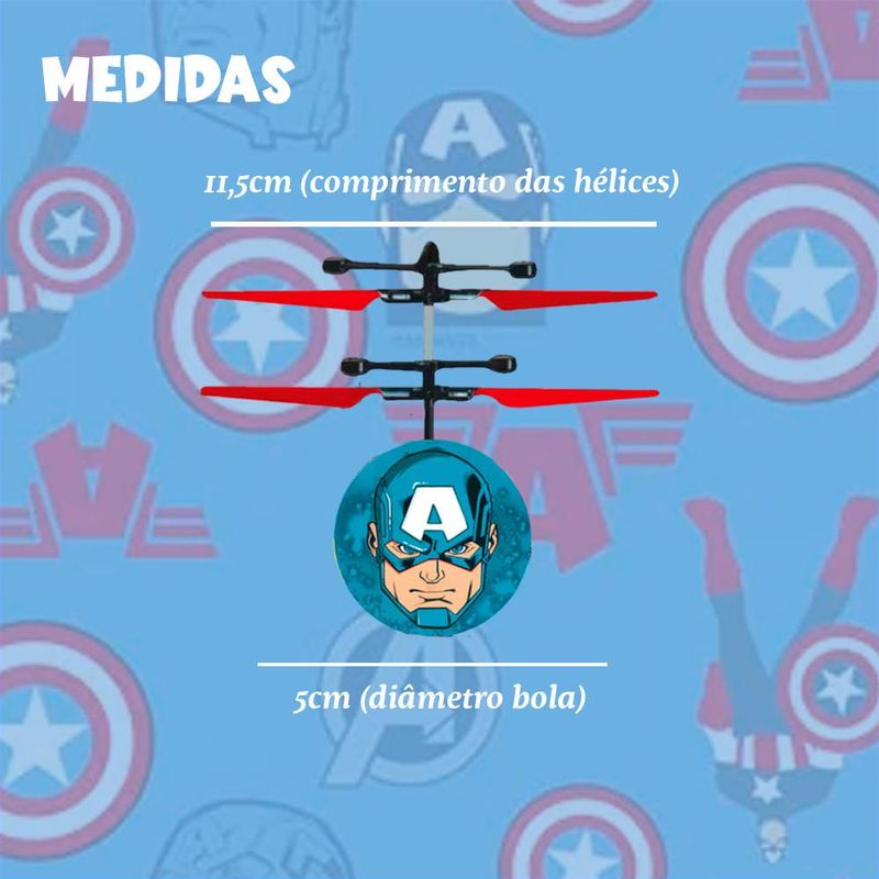 Apresentamos um brinquedo que não apenas diverte, mas também fascina. A Bola Voadora com Sensor do Capitão América é mais do que apenas uma bola - é uma experiência tecnológica que permite que as crianças controlem o voo com suas próprias mãos. Agora, imagine seu filho(a) explorando o universo da tecnologia com a Bola Voadora com Sensor do Capitão América. Esse brinquedo não só proporciona horas de entretenimento, mas também ensina conceitos importantes como controle de movimento, sensoriamento e reação. Foi projetada para suportar quedas e impactos leves durante o uso normal. Além disso, as hélices têm proteção para evitar danos e garantir segurança durante a brincadeira. Combina elementos que as crianças adoram - heróis da Marvel, luzes coloridas e controle de voo. Mesmo que ele nunca tenha brincado com algo assim, a novidade e a sensação de controle garantem uma diversão imediata e duradoura. Tamanho: 5cm (diâmetro bola) / 11,5cm (comprimento das hélices) Fonte de energia: USB Conteúdo: 1 bola voadora e 1 cabo USB. Material: plástico e componentes eletrônicos INMETRO: 007824/2023 Indicação: + 6 anos de idade