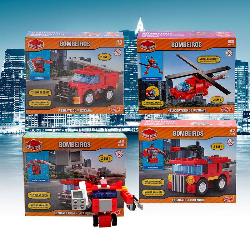 Você já imaginou um brinquedo que une a emoção de montar algo incrível com o entusiasmo de vê-lo ganhar vida? Com o Brinquedo Bombeiros, seu filho pode ser o criador de um veículo/aeronave ou robô. São 47 peças que desafiam a criatividade e a imaginação, e o melhor: uma vez montado, ele se movimenta, trazendo um novo nível de interação. Desenvolvimento da coordenação motora fina: A montagem do brinquedo ajuda a criança a desenvolver habilidades manuais enquanto encaixa as peças. Estímulo ao pensamento lógico: Ao construir um robô ou veículo/aeronave, seu filho aprende sobre organização, solução de problemas e como as partes se conectam para formar um todo funcional. Engajamento e paciência: A construção exige atenção e paciência, incentivando a criança a trabalhar de forma independente ou em grupo para alcançar o resultado final. Conceitos de física básica: Ao ver o brinquedo movido à fricção em ação, as crianças começam a entender, de forma simples, princípios de movimento e energia. As peças são feitas de ABS, um plástico altamente resistente e seguro, que garante que o brinquedo seja durável mesmo após várias montagens e brincadeiras. Material: ABS INMETRO: 002000/2024 Indicação: + 4 anos de idade Composição: 47 peças