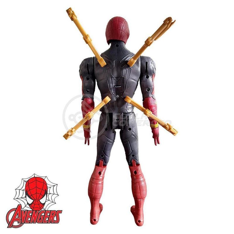 Conteudo: 1 Action Figure Homem aranha traje Aranha de Ferro 29cm + 4 Garras (Boneco possui musica)INMETROCertificador: BRICSNº Certificado: 7482/2022-BRI-1