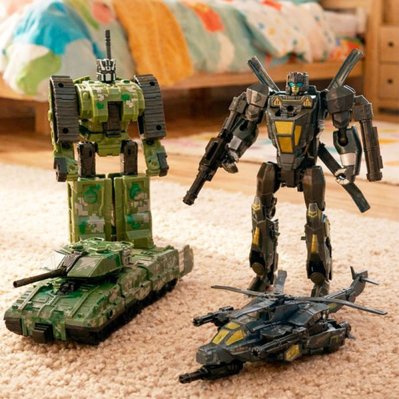 Cada robô se transforma em veículo militar, proporcionando dupla diversão e estimulando a criatividade e a coordenação motora