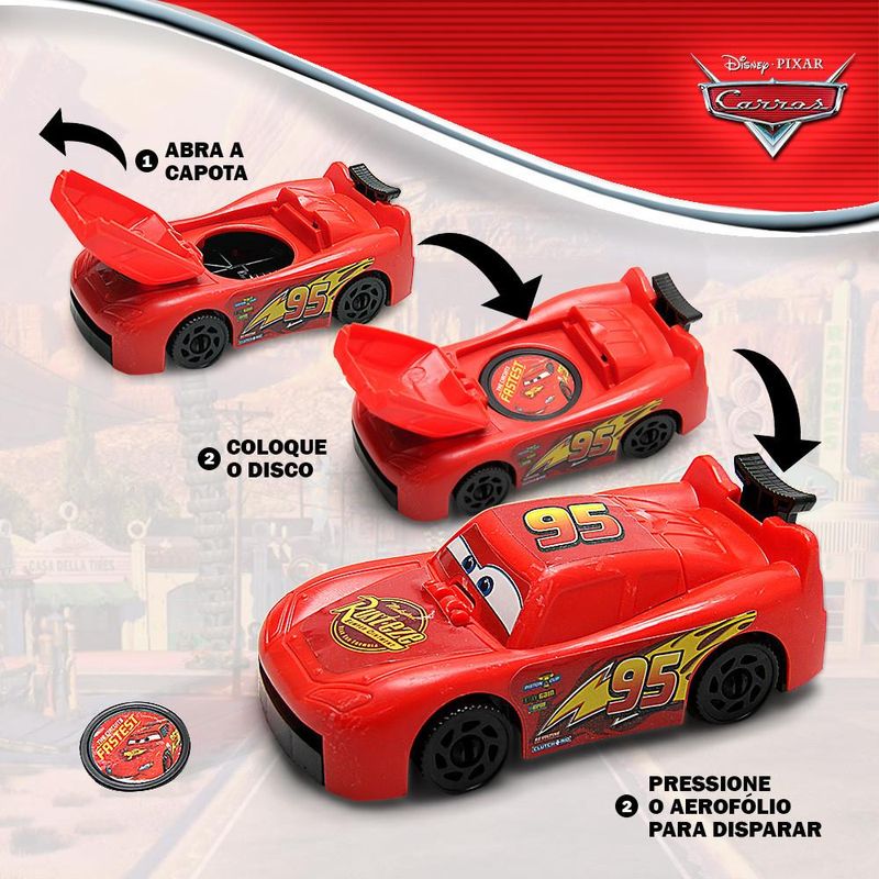 Incentive habilidades motoras e sociais com o Carrinho Lança-Discos Relâmpago McQueen, proporcionando aprendizado e diversão ao mesmo tempo!