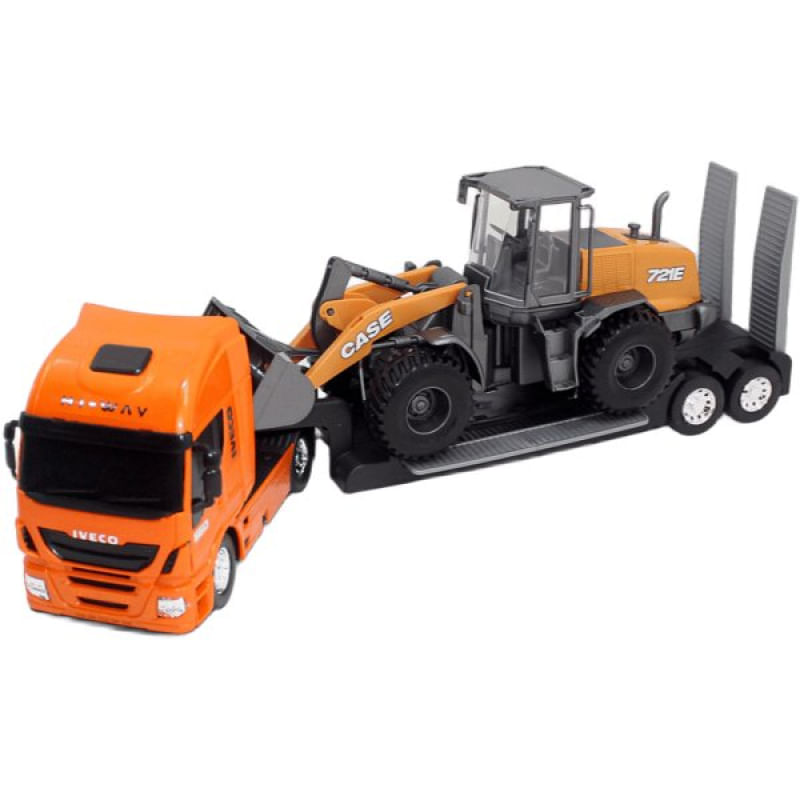 Brinquedo Colecionável Miniatura Caminhão Carregadeira Iveco Laranja -