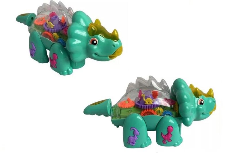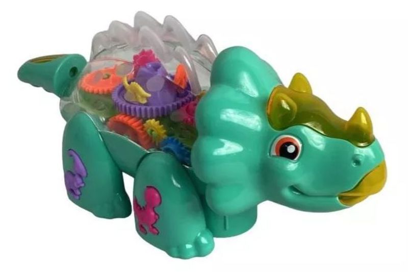 Dinossauro Eletrônico Este brinquedo de dinossauro tem bela iluminação e música, e as engrenagens coloridas são acionadas alternadamente para conduzir a estrutura geral, estimulando a exploração da criança e a capacidade de pensamento fantasioso. Pode exercitar a habilidade prática das crianças, coordenação olho mão e coordenação motora fina habilidades. Esse Bebê dinossauro ele anda, balança a cabeça e o rabo. Característica - Luzes - Musica- Engrenagens- Roda de direção giratória – Ref : 180-0 Medidas;- Comprimento: 27,5cm- Altura: 13cm- Largura: 10,5cm- Peso: 233g