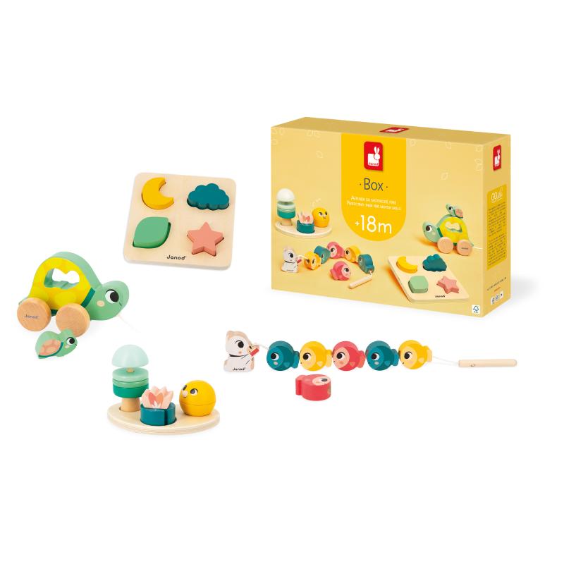 Uma caixa de brinquedos projetada para bebês de 18 meses ou mais: contém 4 brinquedos de aprendizagem