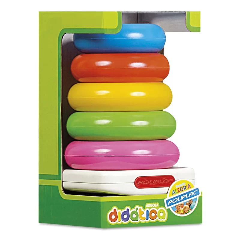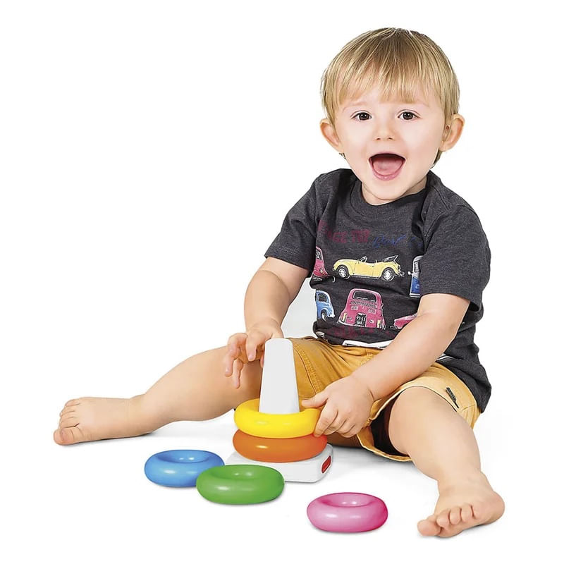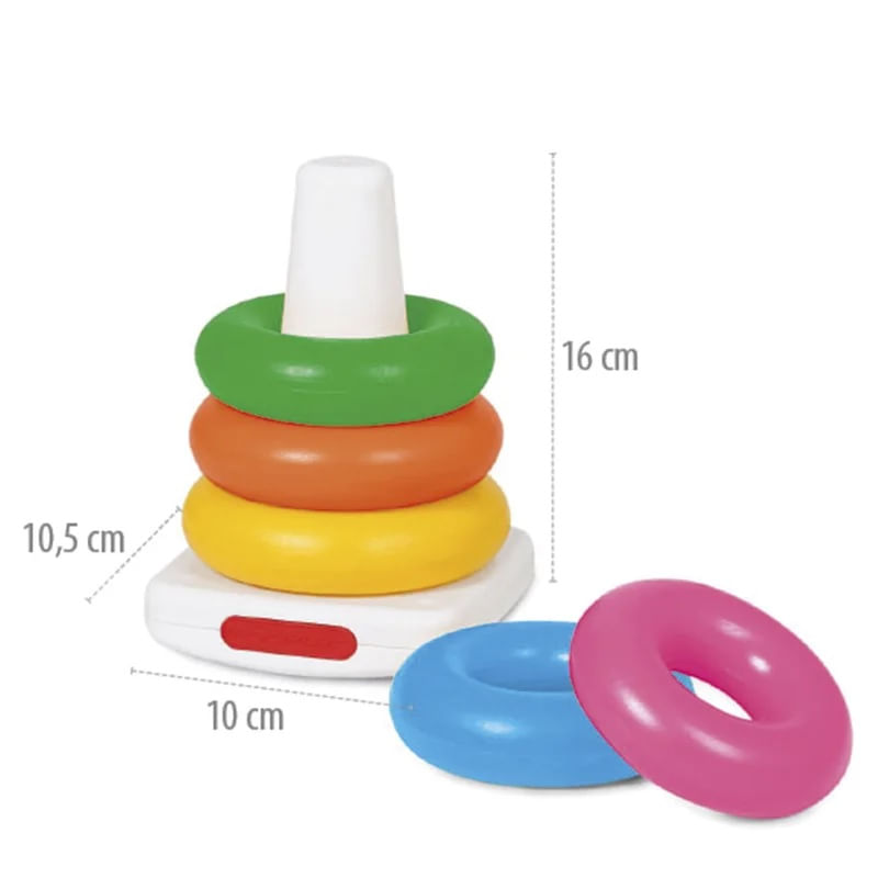 Uma, duas, três, quatro, cinco argolas! Feitas em plástico soprado e super maleável e colorido. As argolas devem ser encaixas em suas posições corretas na sua base.