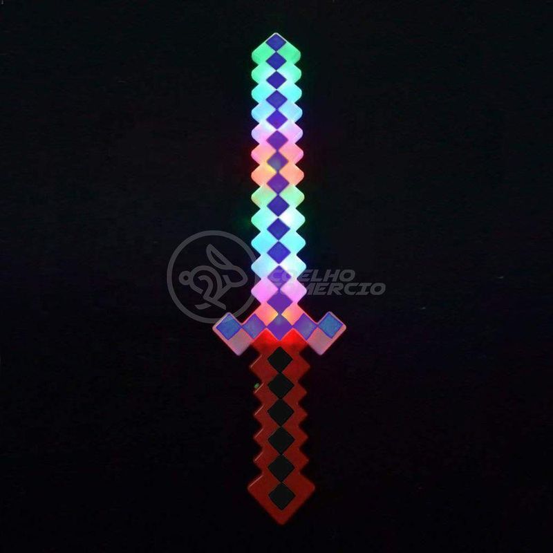 Brinquedo Espada Pixel 58cm Diamante Com Som E Luz à Pilha - Vermelho