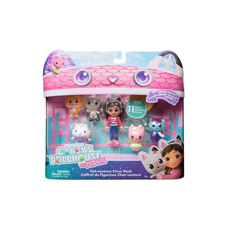 Conteúdo: Pack de 6 Figuras dos Personagens da Casa Mágica da Gabby (Gabby, Pandy Paws, Kitty Fairy, Chumsley, Cakey Cat e Mercat) e acessórios, totalizando 11 peças