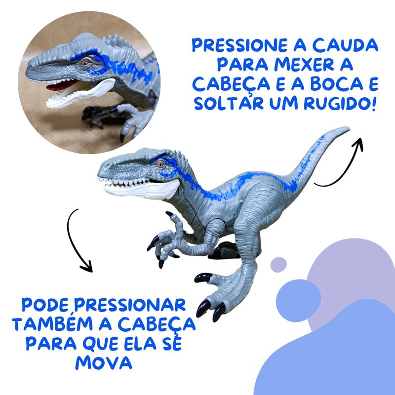 Para os apaixonados pelo mundo dos Dinos, esse brinquedo vai ser um sucesso! Proporcionando uma brincadeira dinâmica e interessante para as crianças. Pressione a cauda para mexer os braços, cabeça e boca do dino, além de soltar um rugido poderoso! Também pode pressionar a cabeça para que se mexa, junto com os braços.