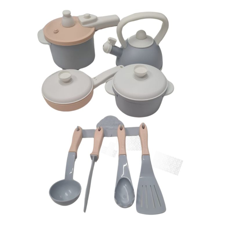 Introduza seu pequeno chef ao mundo da gastronomia com o Jogo De Panelinhas Baby Gourmet - Mercotoys. Este conjunto encantador de panelas e talheres infantis vem em uma linha gourmet completa para curtir uma deliciosa brincadeira. Foi projetado para inspirar a imaginação e promover o desenvolvimento das habilidades motoras finas. Cada peça é cuidadosamente projetada para ser segura, durável e fácil de manusear, proporcionando uma experiência educativa e divertida na hora das refeições de brincadeira.