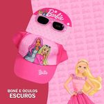 Estilo, proteção e muito charme com Barbie! Se você quer um presente que vai encantar sua pequena e ainda cuidar da saúde dela nos dias de sol, o Kit Boné e Óculos de Sol Barbie Toyng é a escolha certa! Esse conjunto é puro estilo e ainda traz a magia do universo Barbie para o dia a dia das crianças. Ideal para passeios, viagens, praia, parque ou até pra usar na saída da escola, ele vai ser o novo queridinho do guarda-roupa infantil. O boné vem nas cores rosa e pink, com uma ilustração linda das amigas da Barbie e a logo oficial estampada. Um toque de personalidade, leveza e muito charme! Os óculos de sol têm armação rosa com lentes escuras e proteção UV 400, ou seja, protegem mesmo os olhos delicados das crianças contra os raios solares. E o melhor: combinam perfeitamente com o boné! Recomendado para crianças a partir de 4 anos Material de qualidade: Boné: Poliéster Óculos: Policarbonato e acrílico Design confortável, leve e seguro Esse kit foi pensado para unir diversão com cuidado - porque estilo também pode (e deve!) vir acompanhado de proteção. Esses óculos funcionam mesmo ou são só de brinquedo? Funcionam sim! Os óculos possuem proteção UV400 real, ou seja, protegem os olhos dos raios solares como um óculos de verdade, mas com um toque lúdico e fashion que as crianças adoram. É confortável para o dia a dia? Com certeza! O boné tem ajuste ideal para o tamanho infantil e os óculos são leves, não machucam e se encaixam bem no rostinho dos pequenos. Vai servir na minha filha de 4 ou 5 anos? Sim! Esse kit foi feito especialmente para crianças a partir dos 4 anos e tem um ótimo caimento. Além disso, as cores e o visual Barbie fazem sucesso imediato entre as meninas! Dê um toque fashion e protegido aos dias de sol da sua pequena! Compre agora o Kit Boné e Óculos Barbie Toyng e proporcione um visual encantador, com a proteção que toda criança merece. Indicação: + 4 anos de idade