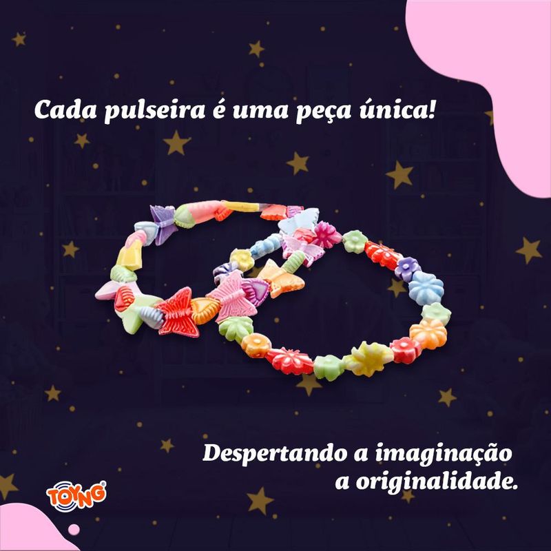 Você já pensou em como um simples brinquedo pode transformar a criatividade das crianças e criar habilidades importantes? Apresentamos um kit completo para criar pulseiras incríveis com pingentes diversos. Com uma variedade de pingentes e miçangas que permitem inúmeras combinações, garantindo e mantendo o interesse da sua filha por mais tempo. Manusear as miçangas melhora a coordenação e a precisão. Cada pulseira é uma peça única, despertando a imaginação e a originalidade. Projetos manuais incentivam a dedicação e a persistência. Contém 24 peças INMETRO: 001904/2024 Material: plástico e tecido Indicação: +6 anos de idade