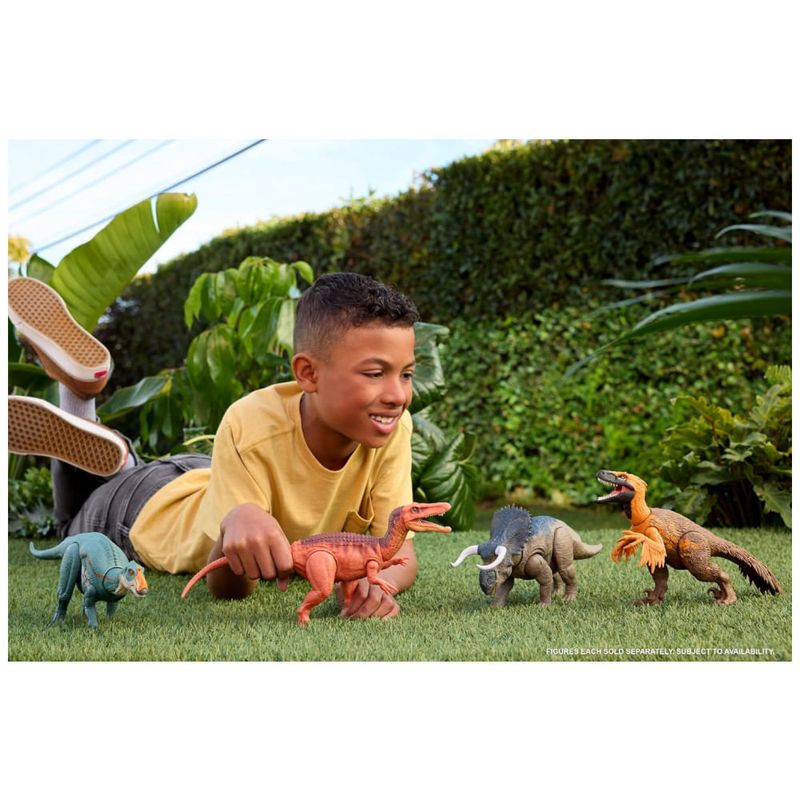 Prepare-se para rugir com ferocidade com este Wild Roar Abelisaurus inspirado em Jurassic World Rebirth. Com um ataque total, as crianças podem facilmente mover a cauda para cima e para baixo neste brinquedo de dinossauro, ativando uma ação voraz de mordida acompanhada de um rugido selvagem; em seguida, gire a cauda para mudar a direção da mordida! Esta figura de 30 cm de comprimento, inspirada no filme, possui articulações posáveis, pronta para emocionantes batalhas ou exibições dramáticas. Escaneie o Código de Rastreamento no pé do dinossauro no aplicativo gratuito Jurassic World Play com um dispositivo inteligente Android ou iOS compatível (não incluído) para desbloquear uma versão digital do dinossauro e jogar o divertido jogo feroz de corrida de vários veículos em terra, ar e mar. O Abelisaurus é adequado para fãs de dinossauros a partir de 4 anos. Cores e detalhes podem variar. Ataque e ruge! Este brinquedo Wild Roar Abelisaurus, inspirado em Jurassic World Rebirth, possui um ataque agressivo de mordida que pode mudar de direção, e um rugido feroz para brincadeiras de batalha de dinossauros! ataque total! As crianças dominarão facilmente ambos os movimentos movendo a cauda para cima e para baixo para ativar o ataque de mordida com um rugido selvagem, e em seguida, torcendo a cauda para mudar a direção do ataque! Cheio de emoção! Esta figura de Abelisaurus tem 30 cm de comprimento e mais de 12 cm de altura, com articulações móveis, pronta para movimentos de ação ou poses realistas. Divertido de montão! Este Wild Roar Abelisaurus é uma adição empolgante a qualquer coleção de dinossauros para fãs a partir de 4 anos. Escaneie e colecione! Escaneie o código no pé do dinossauro no aplicativo gratuito Jurassic World Play com um dispositivo inteligente compatível para atividades de realidade aumentada e criar uma coleção digital de dinossauros! Ride N Rampage Colossal Chase! Neste jogo de aplicativo atualizado, corra com diversos veículos em terra, ar e mar e jogue um emocionante jogo de tiro que extrai DNA dos dinossauros!