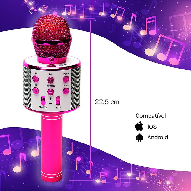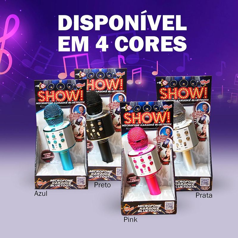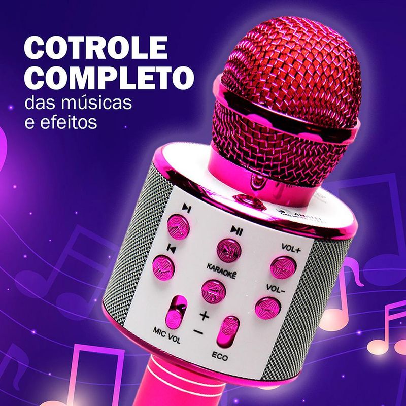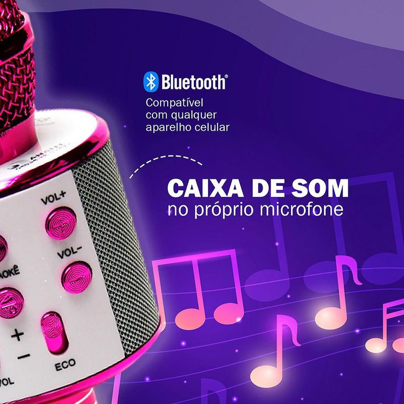 Imagine fazer um show na sua sala, no quarto ou até em uma festa com os amigos. Com o Microfone Karaokê Bluetooth Show, isso é possível, conecte-o via Bluetooth ao seu celular ou tablet e comece a cantar suas músicas favoritas em segundos. Conectividade Bluetooth: Funciona com Android e iOS, permitindo que você sincronize seu celular com facilidade. Efeitos de voz: Alterne entre vozes engraçadas ou mais profissionais com apenas um clique no botão de karaokê. Ajuste de eco: Dê aquele toque especial à sua voz com o efeito de eco ajustável. Entradas USB e SD: Além de Bluetooth, você pode usar um pendrive ou cartão de memória para tocar suas músicas favoritas. Diversão para todas as idades: Seja para crianças ou adultos, todos podem se divertir com esse karaokê portátil. O design é super intuitivo! Basta conectar ao seu celular via Bluetooth, escolher sua música e começar a cantar. Simples assim! O Microfone Show é perfeito para qualquer ocasião: festas, reuniões familiares ou até para praticar suas músicas favoritas no dia a dia. Potência de saída: 3WX2 Faixa de frequência: 100HZ Tamanho: 22,5 x 7,5cm Conteúdo: 1 Microfone com conexão Bluetooth Material: componentes eletrônicos INMETRO: 002968/2022 Homologado Anatel - 04034-18-11471 Alimentação: Bateria recarregável via USB (cabo incluso) Indicação: + 6 anos de idade