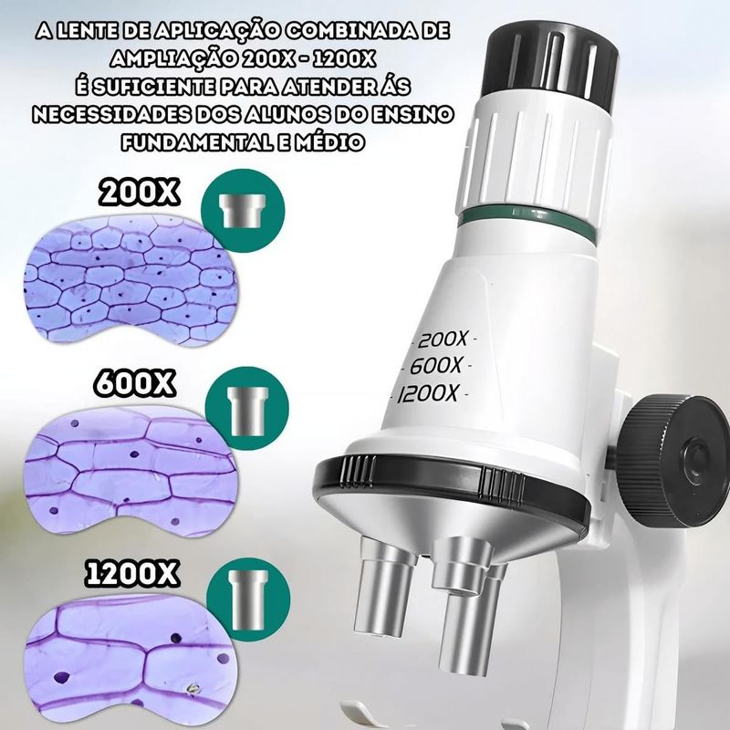 Explore o mundo invisível com o Microscópio POLILAB! Com ampliação de até 1200x e iluminação LED, este microscópio oferece uma visão detalhada do mundo microbiano, incentivando a curiosidade e a descoberta científica das crianças. Desperte o cientista que há nelas e mergulhe em uma jornada de aprendizado fascinante!
