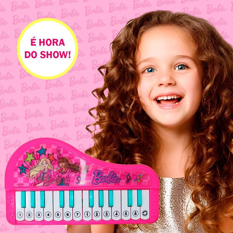 Sabe aquele momento em que você percebe que sua filha ama música e adora brincar de tocar instrumentos? O Mini Teclado Musical Barbie é perfeito para transformar essa paixão em uma brincadeira educativa. Com 14 teclas, esse teclado é fácil de tocar e estimula a criatividade, coordenação motora e habilidades musicais da sua filha. O design é inspirado no estilo glamouroso da Barbie, o que torna a brincadeira ainda mais especial. Feito com materiais seguros e duráveis, o Mini Teclado Barbie é indicado para crianças a partir de 4 anos, incentivando a exploração musical desde cedo. Além disso, o teclado funciona com 2 pilhas AA (não inclusas), sendo fácil de ligar e começar a tocar em qualquer lugar. Seja em casa ou em uma apresentação para a família, o show nunca para. Prepare-se para ouvir as primeiras melodias da sua pequena com o Mini Teclado Barbie Toyng! Será que minha filha vai entender como usar o teclado? O Mini Teclado Barbie foi desenvolvido pensando nas crianças. Ele é intuitivo, fácil de tocar e permite que sua filha comece a brincar de fazer música sem complicações. Esse teclado é resistente? Não vai quebrar fácil? Sim! Feito com polipropileno, um material seguro e resistente, o Mini Teclado Barbie foi projetado para suportar as brincadeiras do dia a dia, garantindo durabilidade. Minha filha vai perder o interesse rápido? O Mini Teclado Barbie não é só um brinquedo. Ele estimula a criatividade, incentivando sua filha a criar novas melodias a cada brincadeira, mantendo-a engajada e explorando o mundo da música. Quer ver sua filha brilhando e criando suas próprias músicas? Compre agora o Mini Teclado Barbie e transforme cada dia em um show musical incrível. Garanta o seu e comece a diversão! Material: Polipropileno INMETRO: 007821/2023 Indicação: + 4 anos de idade Alimentação: 2 pilhas AA (não inclusas) Conteúdo: 1 mini teclado