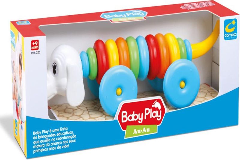 Brinquedo Monta e Desmonta Baby Play AuAu - Cometa Brinquedo Educativo, auxilia na coordenação motora e na percepção de cores. Tamanho do produto: 54 cm X 15,5 cm X 13 cm. Idade Recomendada: A partir de 2 anos. Selo Inmetro: CE-BRI/IQB 006268 NM 300/2002 - OCP 006.
