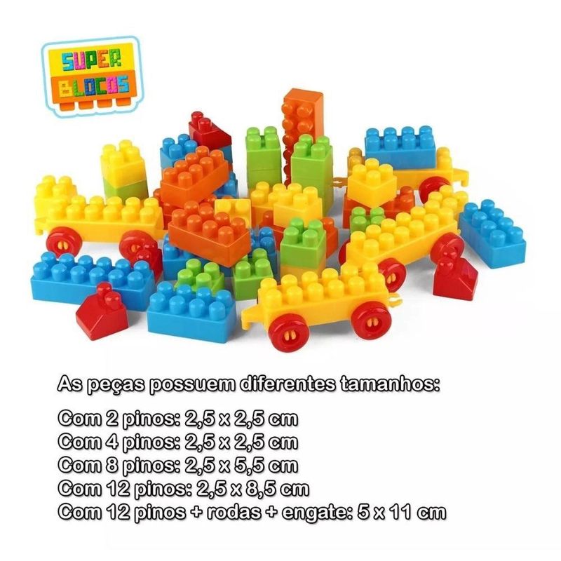 Peças em material plástico, de fácil encaixe, que estimulam a criatividade e imaginação.