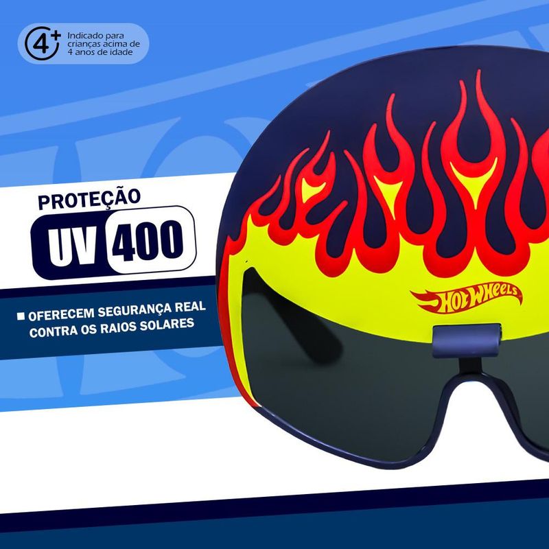 Chegou o acessório perfeito pra deixar qualquer brincadeira ainda mais radical! Se o seu pequeno ama velocidade, estilo e aventura, o Óculos Escuro Máscara Hot Wheels é a escolha ideal! Com um design único em formato de capacete, ele traz uma vibe de piloto profissional, com uma estampa super impactante em azul, amarelo e vermelho, além do logo Hot Wheels no centro - um verdadeiro símbolo de velocidade! As lentes escuras com proteção UV400 garantem que, além de estiloso, o óculos ofereça segurança real contra os raios solares. Perfeito para passeios ao ar livre, viagens ou até mesmo para dar aquele toque de personalidade nas brincadeiras do dia a dia! O modelo é indicado para crianças a partir de 4 anos, e foi feito com materiais de qualidade: policarbonato e acrílico, que combinam leveza, resistência e conforto - tudo o que os pequenos precisam pra brincar com liberdade e segurança. Seja para compor o visual ou proteger durante os momentos sob o sol, esse óculos máscara é o acessório definitivo para os fãs de Hot Wheels que gostam de se destacar com estilo! Esse óculos realmente protege do sol ou é só brinquedo? Ele protege de verdade! A lente possui proteção UV400, que bloqueia totalmente os raios UVA e UVB, sendo seguro para uso infantil em ambientes externos. É confortável para crianças? Sim! Mesmo com o visual impactante de capacete, o óculos é leve e anatômico, feito com materiais resistentes e pensados para o uso contínuo sem incomodar. Dica: Ele é uma excelente opção de presente para crianças que curtem corrida, carrinhos e gostam de acessórios únicos. Um produto original Toyng, marca referência em brinquedos criativos e de qualidade. Dê o sinal verde para a diversão! Garanta agora o Óculos Máscara Hot Wheels Toyng com proteção UV400 e deixe seu pequeno piloto com o visual mais radical da pista! Clique em "Comprar" e acelere nessa aventura com estilo e proteção! INMETRO: 004822/2024 Indicação: + 4 anos de idade