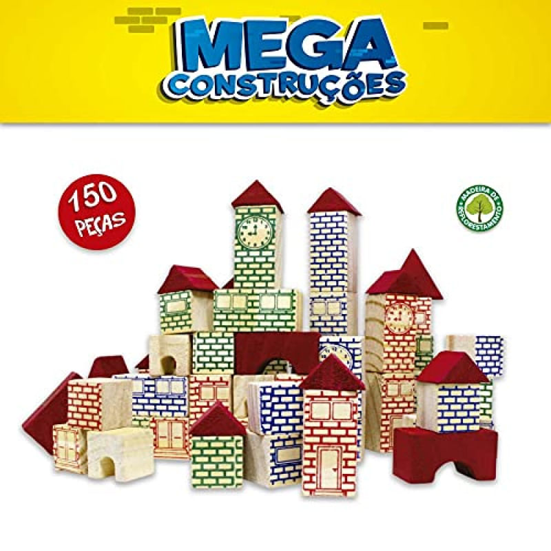 Brinquedo clássico que toda criança adora! Apresenta 150 peças fabricadas em madeira de reflorestamento, com formas e pinturas que simulam tijolinhos, janelas e telhados, possibilitando a montagem de diversas estruturas. Divertido e educativo, auxilia na criatividade e coordenação motora das crianças.