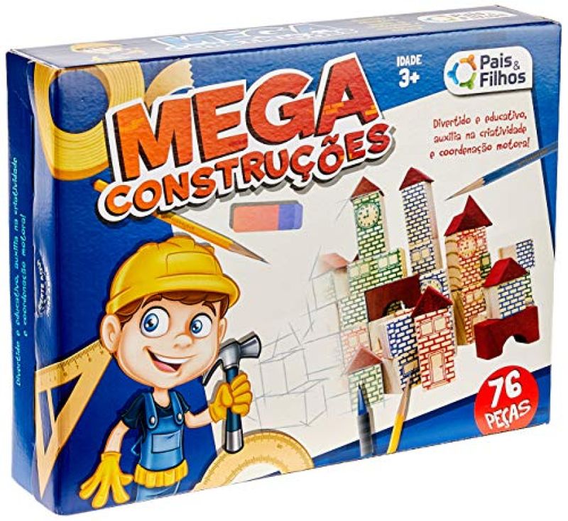 Mega Construções 76 peças, divertido e educativo, auxilia na criatividade e coordenação motora. A partir de 3 anos.