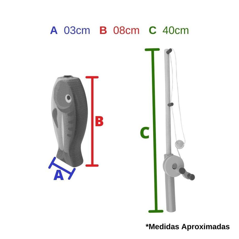 Conteúdo da Embalagem: 1 Kit Brinquedo De Pescaria Com 1 Vara e 5 Peixinhos Coloridos.