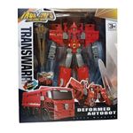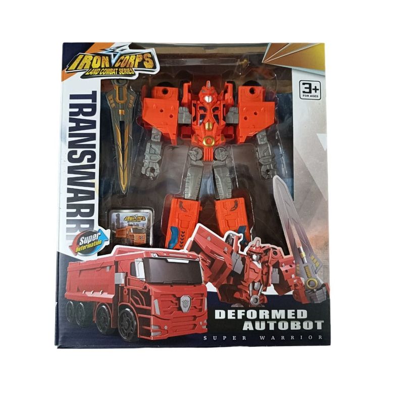 Trata-se de um brinquedo robô transformável, especificamente um boneco "Deformed Autobot" da marca "Transwarr". Ele é um brinquedo genérico, também conhecido como "knockoff" ou "bootleg", inspirado nos personagens da franquia Transformers, como o Optimus Prime.