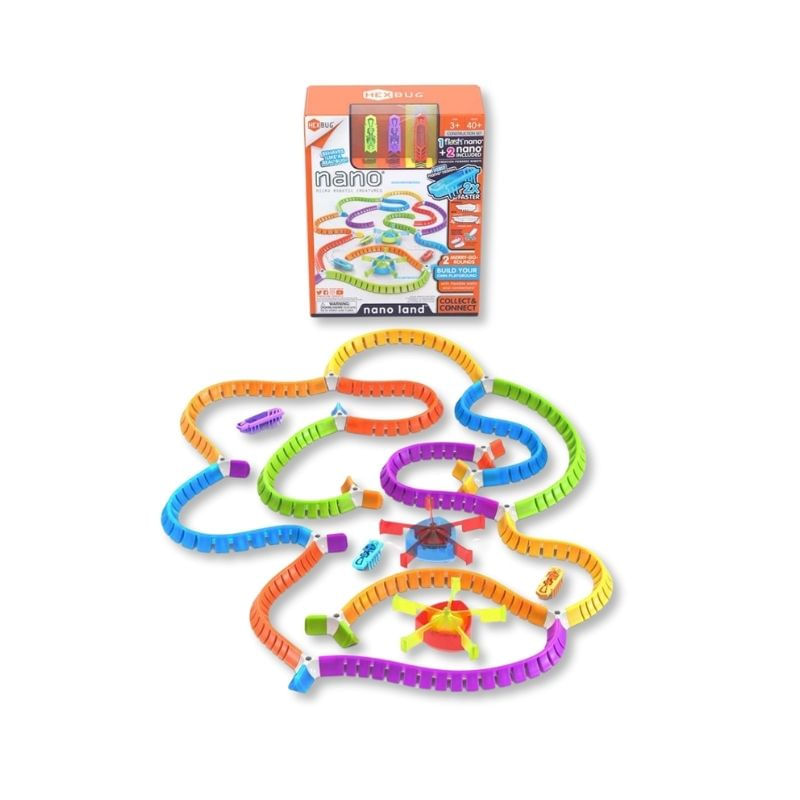 Descubra o poder da tecnologia de vibração enquanto seu nano ricocheteia nas paredes do novo Nano Land da Hexbug! Este conjunto de mistura e combinação inclui uma série de acessórios para construir playgrounds imaginativos. As crianças podem adicionar as 2 peças do carrossel como obstáculos independentes, para um nível extra de diversão!