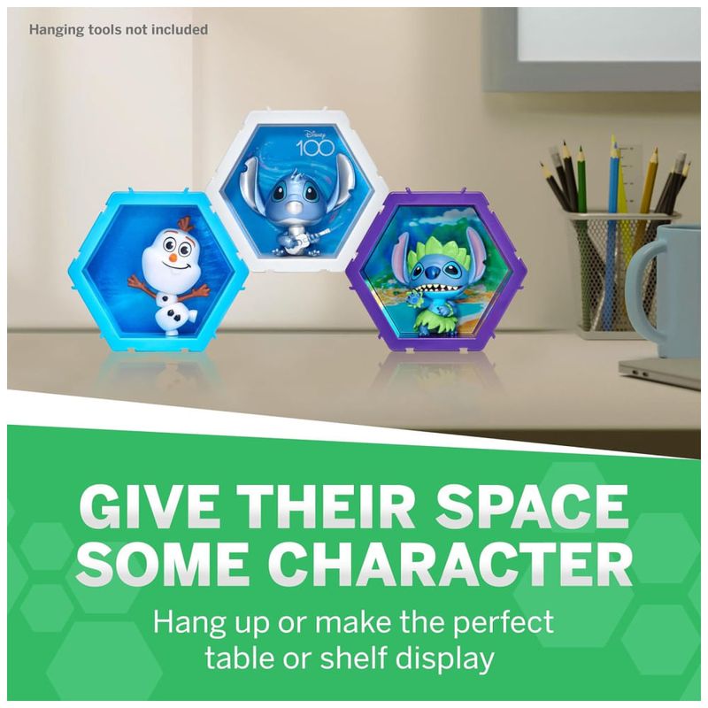 Os fundos lenticulares 4D de alta resolução criam a ilusão de que Stitch está saindo do mundo dele e entrando no seu, transportando-o para uma jornada de fantasia e diversão. Os personagens são fixos e não removíveis, mas o item é conectável, permitindo que você crie e monte sua própria combinação única para exibir em qualquer lugar, seja em uma parede, prateleira, mesa ou parapeito de janela.
