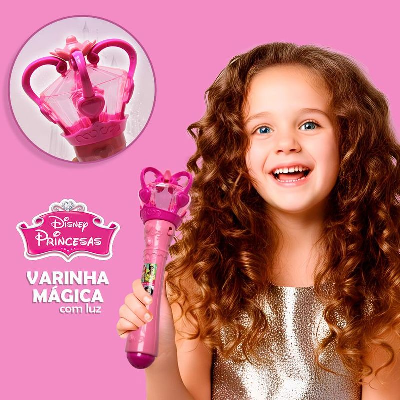 Imagina transformar qualquer momento em uma mágica aventura com as Princesas Disney! A Varinha Mágica com Luz vai fazer suas pequenas sonhadoras brilharem de felicidade. Com um simples toque, a varinha ilumina, trazendo o mundo encantado das princesas para a palma da mão. A Varinha Mágica com Luz não é só uma ferramenta de diversão - ela estimula a imaginação, a criatividade e a narrativa nas crianças. Ao brincar de faz de conta, as crianças desenvolvem habilidades importantes, como a capacidade de resolução de problemas, empatia e expressão emocional. Feita de material resistente, projetada para aguentar todas as aventuras das pequenas princesas. Além disso, é leve e fácil de manusear, ideal para crianças a partir de 4 anos. Conteúdo: 1 varinha mágica com luz. Material: plástico e componentes eletrônicos INMETRO: 005545/2024 Indicação: + 4 anos de idade Alimentação: 2 pilhas AA (não inclusas)