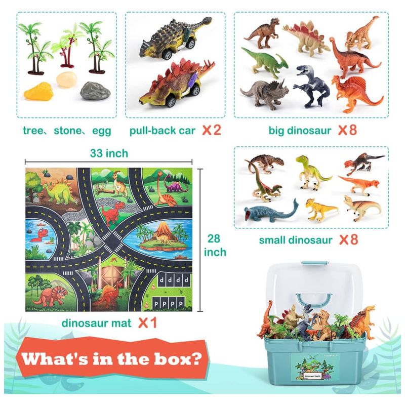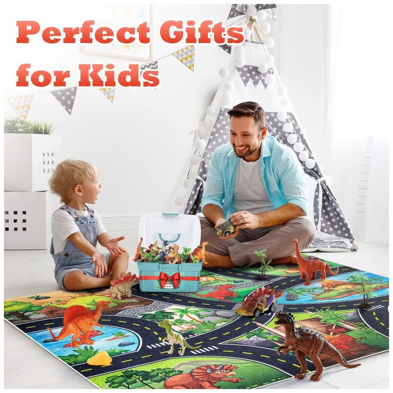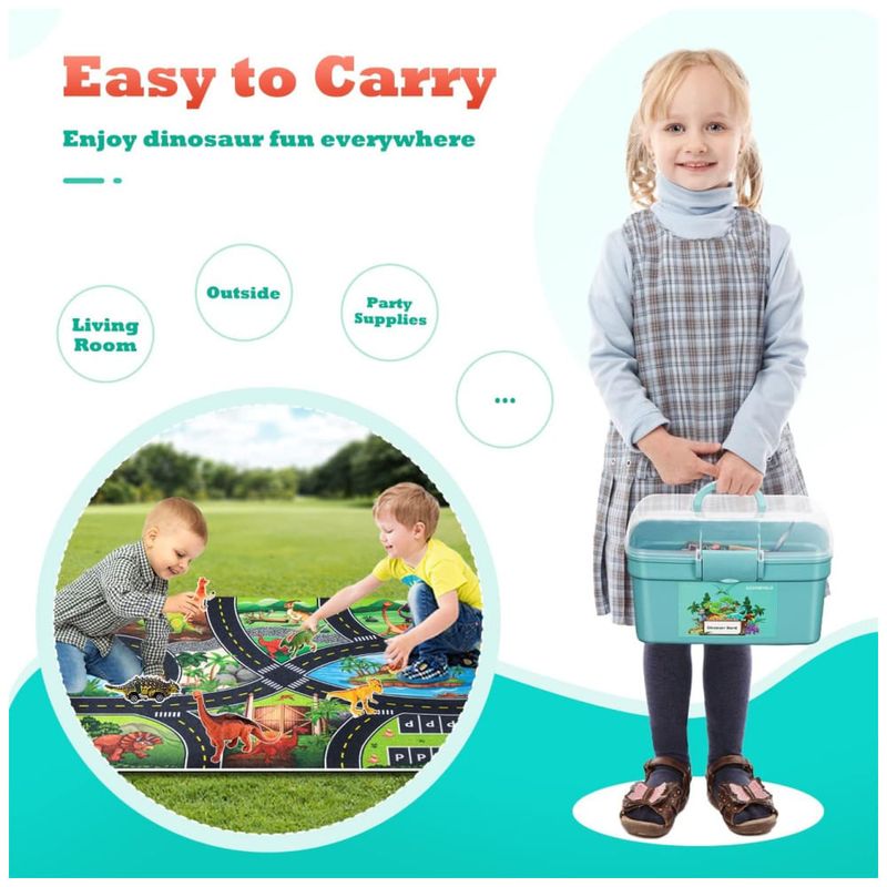 Os brinquedos educativos de dinossauros não são apenas um brinquedo, mas também um elo comunicativo para o compartilhamento. A caixa de grande capacidade torna o conjunto fácil de armazenar, e o tapete pode ser dobrado em um tamanho compacto, tornando o portátil para ambientes internos e externos e viagens. O conjunto de dinossauros é um presente perfeito para crianças, seja para aniversários, Natal ou feriados. Não perca a chance de surpreender seus filhos