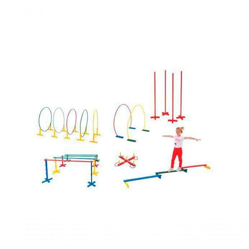 Conjunto confeccionado em madeira e arcos em plástico, contendo 63 peças. Possibilita o aprimoramento do esquema e da imagem corporal. Acondicionado em caixa de papelão