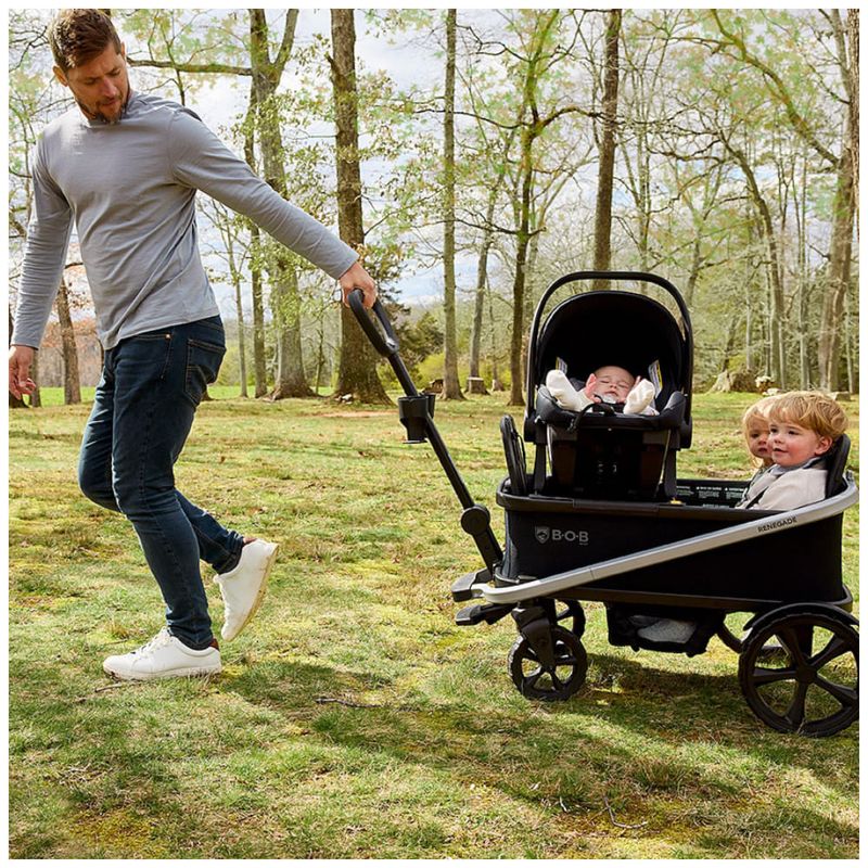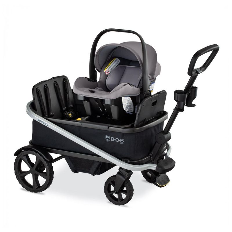 - Instalação fácil e rápida para conectar o bebê conforto ao carrinho BOB Gear Renegade Wagon;