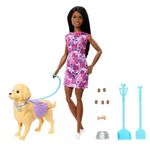 A boneca Barbie "Brooklyn" passeia com seu cachorro pela Cidade Grande e você pode ajudar a limpá-lo! Girar o mecanismo do cachorro de brinquedo e puxar a coleira faz com que você possa vê-lo realmente andar. Ao empurrar a cauda, o cachorro faz cocô e, em seguida, você pode recolher com a escumadeira. Com acessórios como uma coleira que cabe nas mãos da boneca, uma tigela de comida e um petisco para cães, as crianças têm tudo o que precisam para ajudar a Brooklyn a cuidar do seu filhote! A boneca não pode ficar em pé sozinha. As cores e as decorações podem variar. Idade recomendada: 3 anos+; Composição/Material: PLÁSTICO 100%; Funciona com pilhas: não; Brinquedo com luz: não; Brinquedo com som: não; Dimensões: 32,7x7x22 cm; Peso: 0,37 kg; Código de Barras: 194735220281; Garantia do Fornecedor: 3 Meses contra defeito de fabricação;