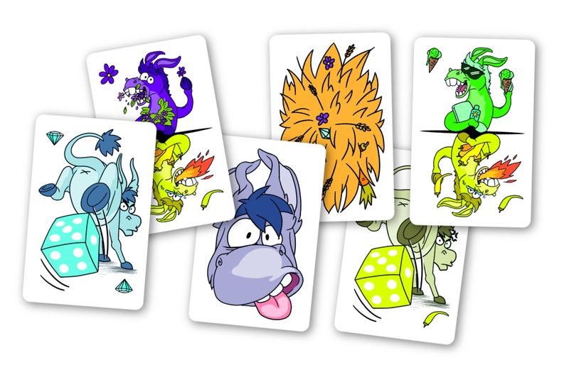 Role os dados e decida como posicioná-los. Depois, escolha com cuidado qual carta jogar – se escolher mal, pode acabar com a maior carta da rodada e quem terminar com ela leva o título de Burrão!