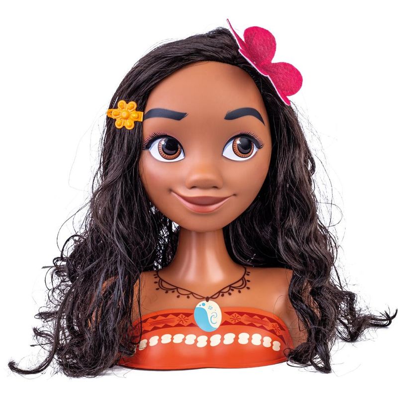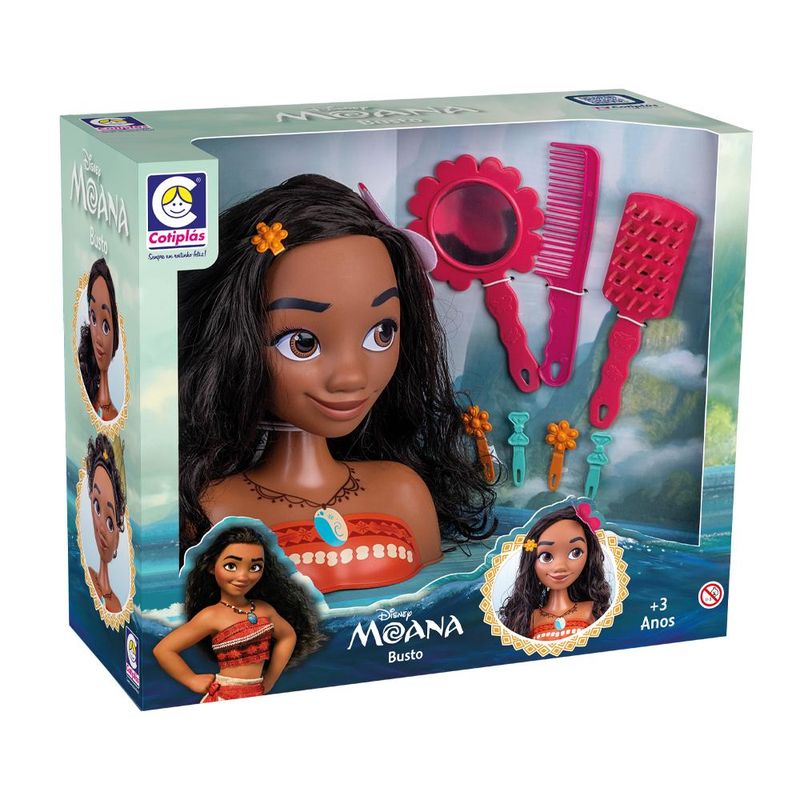 O busto da Moana é feito em vinil macio e possui expressões perfeitas como as de uma pessoa de verdade. Crie diversos penteados com o busto da Moana. Ela vem com lindos acessórios para deixar o dia de beleza completo , cheio de alegria e diversão. Você também pode usar os acessórios da Moana em você , com imaginação e criatividade dá para criar possibilidades muito legais.