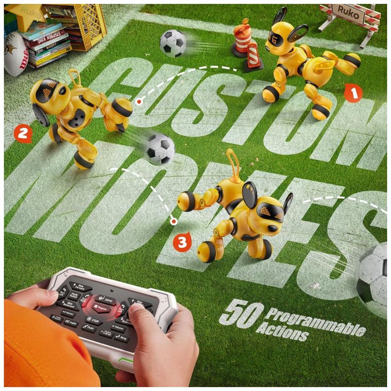 Conteúdo da embalagem: 1 cachorro robô Ruko 18011 amarelo, 1 controle remoto, 1 cabo USB, 1 manual do usuário