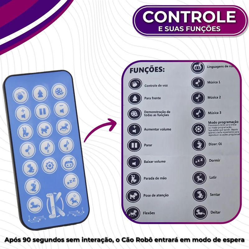 - Pode ser controlado tanto pelo controle remoto quanto por voz e palmas; Um presente inovador que une diversão, tecnologia e aprendizado – ideal para a nova geração de pequenos apaixonados por robôs!