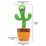 Tamanho aproximado do cacto: altura 32cm x largura 15 cm x profundidade 10 cm.